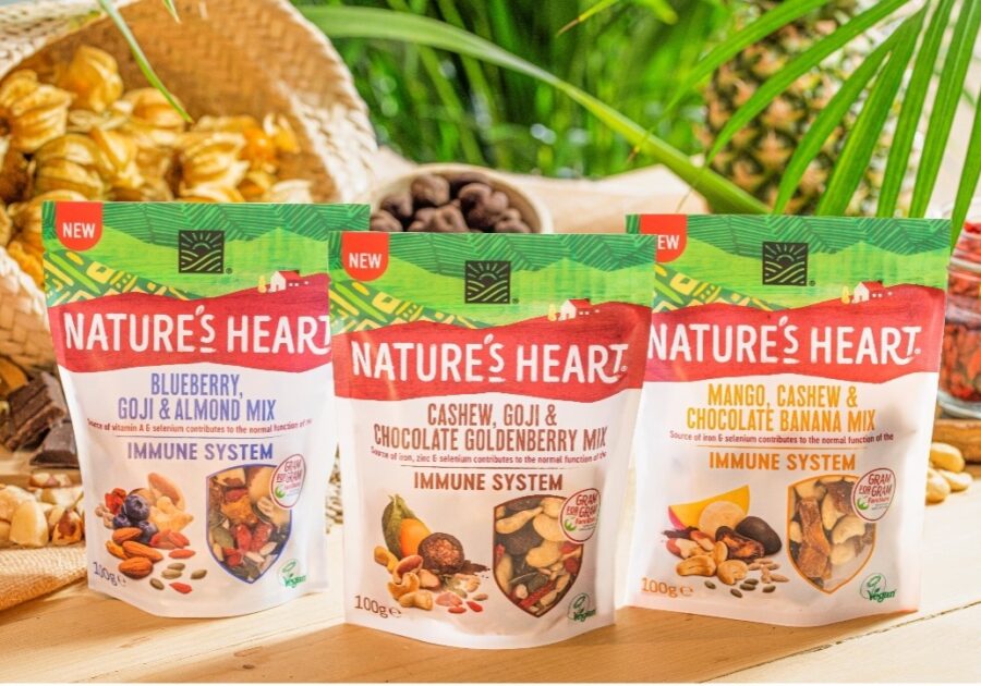 Nature’s Heart, a brand dedicated to exploring and championing nature’s finest ingredients, has unveiled its new Immune system snacking range. The three variants blend immune supporting benefits with delicious flavour combinations for the ultimate, tasty snack. Immune System is the fourth range from Nature’s Heart, joining: Dried Fruits, Chocolate Covered Fruits & Superfood Ingredients.