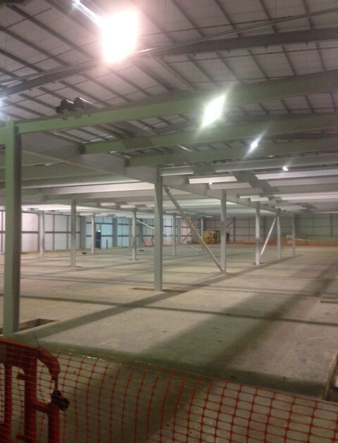 Mezzanine and steelworks are installed at the new Lewisher Road factory, which is due to come on stream for Universal Flexible Packaging Ltd in the Spring of 2015. Concrete will be poured in the next fortnight allowing for the installation of the first seven popcorn production lines in December and January.