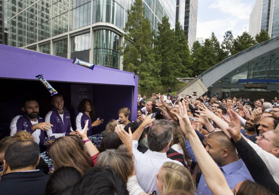 City residents in London, UK, were given an afternoon re-energising lift with a free bar of chocolate as part of a million-pound ‘human charging point’ campaign for Cadbury Boost bars.