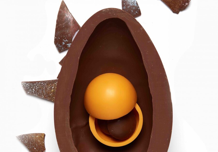 The hand-finished series creates a space like effect of star clusters and nebulae. Filled with a sun sphere egg yolk and six hidden chocolate flying saucers inside, the range is available in 38% Guittard Milk and 72% Guittard Dark chocolate, in Medium and Large sizes.