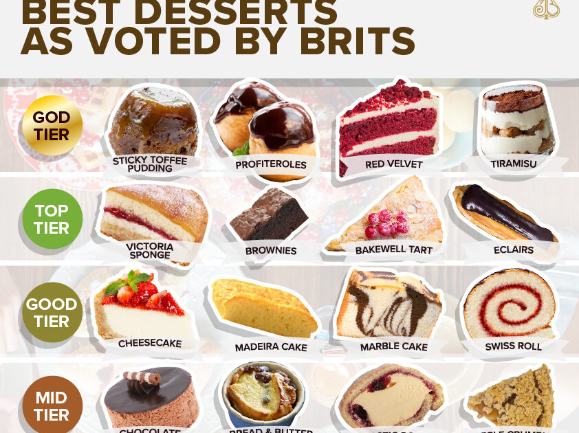 A survey of Britain’s dessert-loving consumers has found that sticky toffee pudding, profiteroles, red velvet cake an tiramisu have been placed as having ‘godlike status’ in a new chart offering the lowdown on the country’s favourite sweet treats.