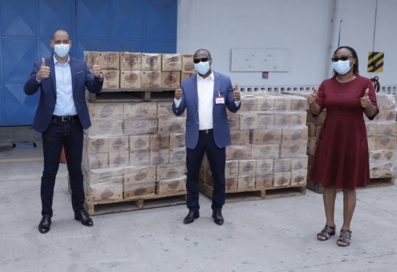 Unilever (team members pictured) presented the donation to Barry Callebaut, which in turn managed the distribution to Unilever cocoa farmer cooperatives. Furthermore, Barry Callebaut has offered additional support for farmer communities through the distribution of official WHO posters with COVID-19 protective instructions to farmer groups, via local coaches, and supporting governmental dissemination of evolving and urgent information to remote communities through its coaching networks.