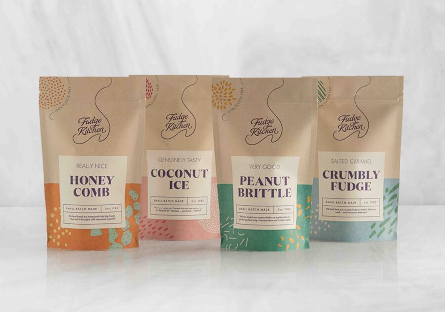The compostable pouches range follows on from Fudge Kitchen’s sustainable rebrand earlier this year. As part of their new look and feel, the confectioners moved to UK printed packaging, dramatically reducing their carbon footprint, and switched to plant-based inks and water-based glues. All non-compostable packaging is now FSC certified and fully recyclable.