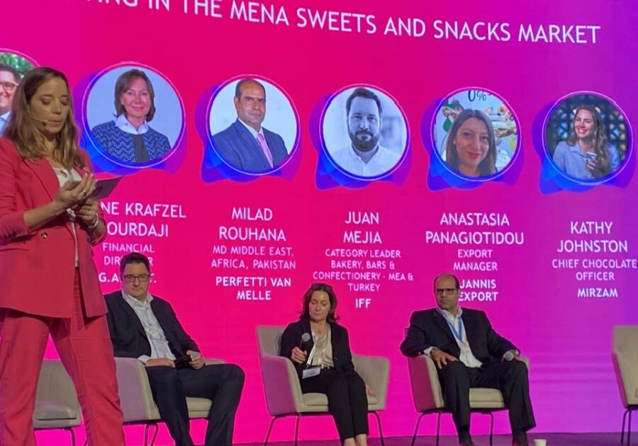 The debut panel included Milad Rouhana, MD Middle East, Africa, Pakistan, at Perfetti Van Melle, Anastasia Panagiotidou, export manager at Greek confectionery business, Jannis, Karsten Daum, director of German Sweets, Sabine Krafzel Khourdaji, financial director at import firm G.A.A.S.T, and Juan Mejia, category leader bakery, bars and confectionery, MEA and Turkey, at IFF.