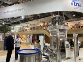 The grand prize draw will take place on 25 July 2024, and the winner will receive the world’s fastest VFFS solution, the tna robag (featured below at last year’s Interpack (pic: Neill Barston), which operates at significant speeds of up to 250 bags per minute combined with wastage as low as 0.1%. It provides superior flexibility and enhanced serviceability for maximum up-time, and bags just about any type of food application faster and more efficiently than anyone else.